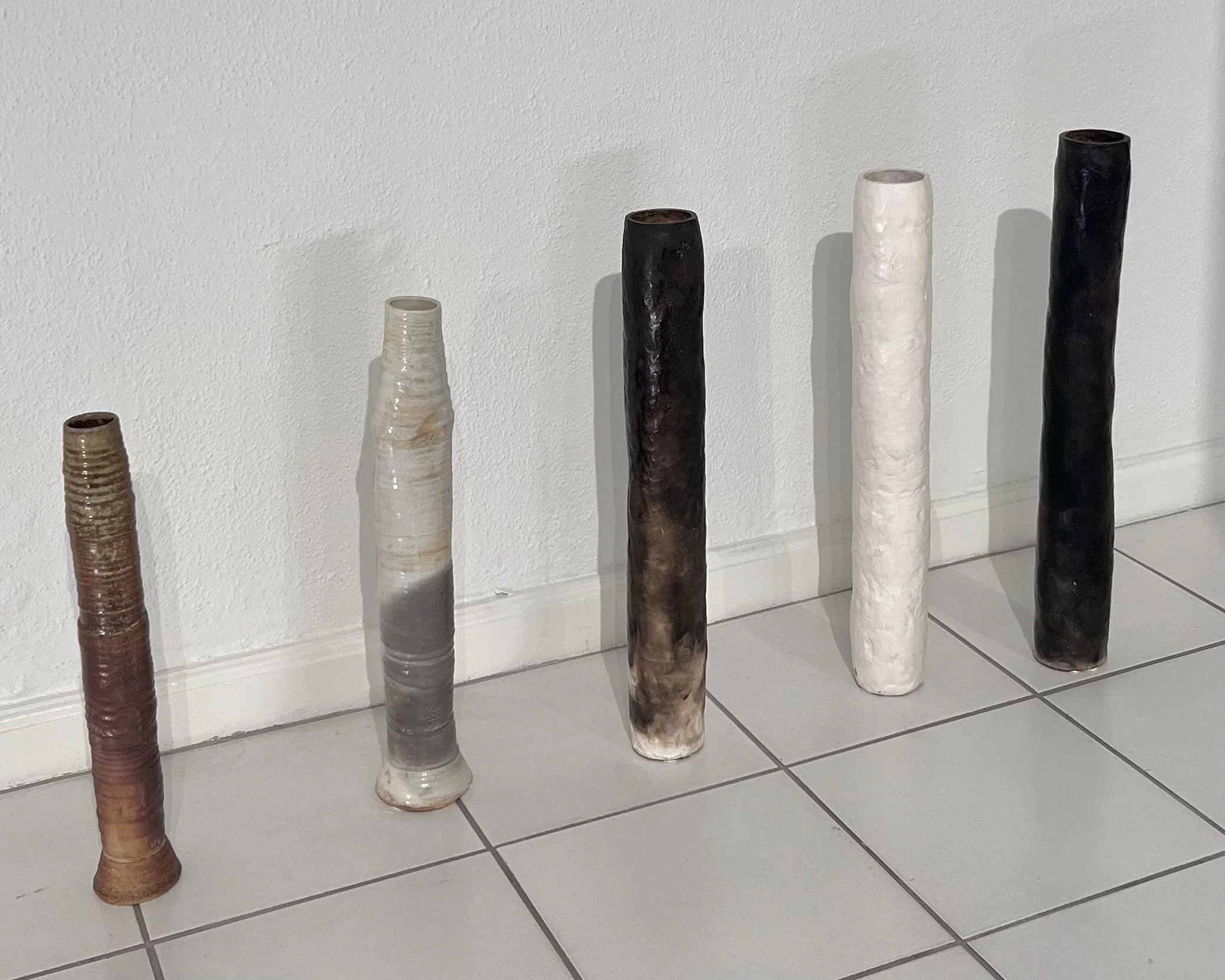 Keramiker Priscilla Mouritzen’s nyeste unika-porcelæn, brændt i træfyret ovn på Guldagergaard, præsenteres i dialog med ekspressivt maleri af billedkunstner Jesper Weylandt.